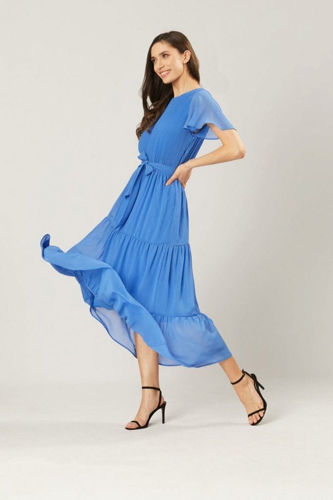 Wesele, na które jesteś zaproszona coraz bliżej, a Ty nadal szukasz idealnej kreacji? Bogata oferta sukienek może przyprawić o zawrót głowy. Na wieszakach w sklepach znajdziesz fasony maksi, midi i mini, w kwiaty, z cekinami, falbanami lub gładkie. Możesz wybierać pomiędzy szyfonowymi, zwiewnymi sukienkami, a prostymi nowoczesnymi formami. Ale nawet jeśli już zdecydujesz się na konkretny model pozostaje pytanie… jaki kolor? Śluby rządzą się swoimi prawami, ponadczasowe biel i czerń nie sprawdzą się w tym przypadku. A zatem modny róż, stonowana zieleń? Pastele czy raczej intensywne barwy? Naszą odpowiedzią jest… niebieski, jest to jeden z tych kolorów, który pasuje każdemu. Kobaltowa lub błękitna sukienka to idealny wybór na wesele, dodaje blasku i świeżości naszej cerze i świetnie harmonizuje z włosami blond i ciemnymi.