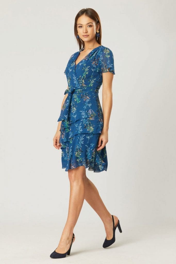 Jeśli jesteś zaproszona na skromniejszą imprezę np. ślubny obiad dla najbliższych lepszym wyborem będzie klasyczna wizytowa sukienka z małą ilością ozdób. Prosta sukienka w głębokim chabrowym odcieniu lub lekko połyskująca satynowa w kwiaty zapewnią Ci elegancki wygląd.