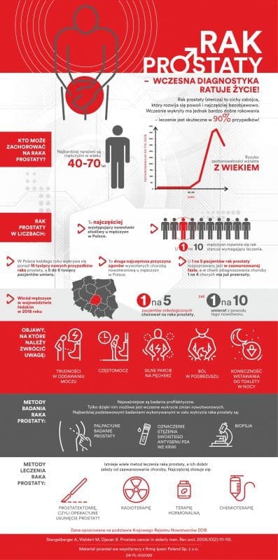 Eksperci alarmują, że zachorowalność na raka prostaty stale wzrasta. W Polsce nowotwór ten stanowi już ok. 20 proc. wszystkich rozpoznanych nowotworów złośliwych. Oznacza to, że co piąty mężczyzna zmagający się z chorobą onkologiczną, choruje na raka prostaty. Według danych Krajowego Rejestru Nowotworów w Polsce rejestruje się rocznie ponad 16 tysięcy nowych zachorowań i ponad 5 tysięcy zgonów. Tym samym rak prostaty zajmuje pierwsze miejsce pod względem liczby zachorowań oraz drugie miejsce po raku płuca w zestawieniu przyczyn zgonów.